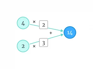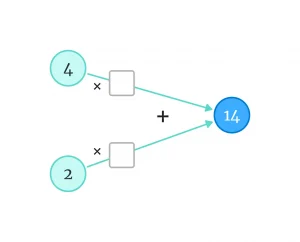 همانطور که ما در بالا، وزنهای روی یال گرافها را حدس زدیم، وقتی یک مدل هوش مصنوعی را آموزش میدهیم، مدل هم باید جاهای خالی (w1 و w2) را پر کند: